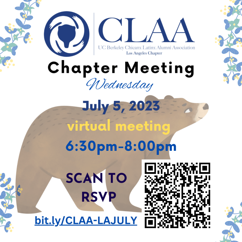“The 2023 UC Berkeley Chicanx Latinx Alumni Association (UCB CLAA) Scholarship Program is sponsored by an amazing group of donors, foundations and CLAA regional chapters. Thanks to their contributions, UCB CLAA Scholarships will support undergraduate and graduate Chicanx Latinx students at Cal who demonstrate need for tuition, books, equipment, and living expenses. Our application for the 2023 cycle is now open and is due on August 27, 2023.